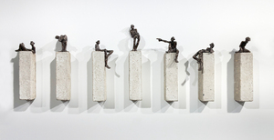2026Here Together kan enkel in groep per 7 verkregen worden. De prijs is 2950€ voor alle 7 samen. Het zijn massief bronzen beeldjes - voor meer detail, klik op het werk. Afmetingen per beeldje incl. betonnen sokkeltje 25 x 5 x 5